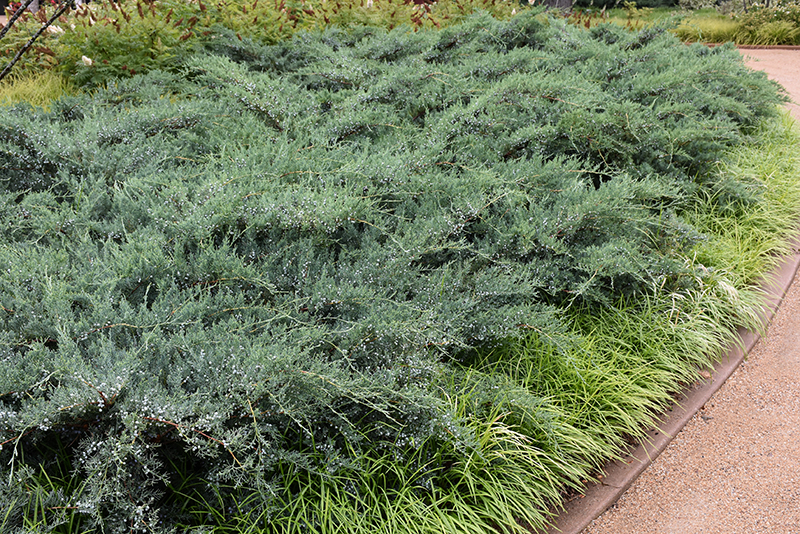 An excellent massing or groundcover evergreen shrub, with dusty bluish-green fine-textured foliage, showy blue berries and a spreading, arching habit of growth, very adaptable but needs full sun
