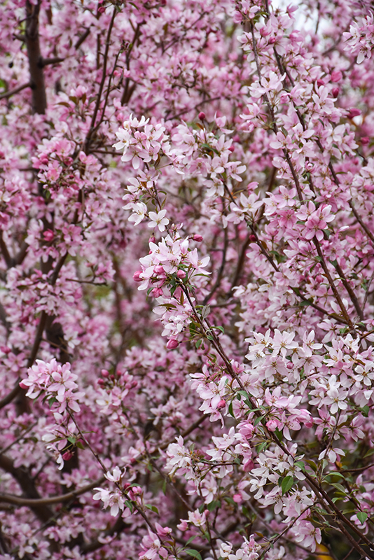 An upright ornamental tree that's taking the gardening world by storm, with showy rose-pink flowers in spring followed by persistent bright red fruit in fall; makes a great accent for smaller home landscapes, needs well-drained soil and full sun